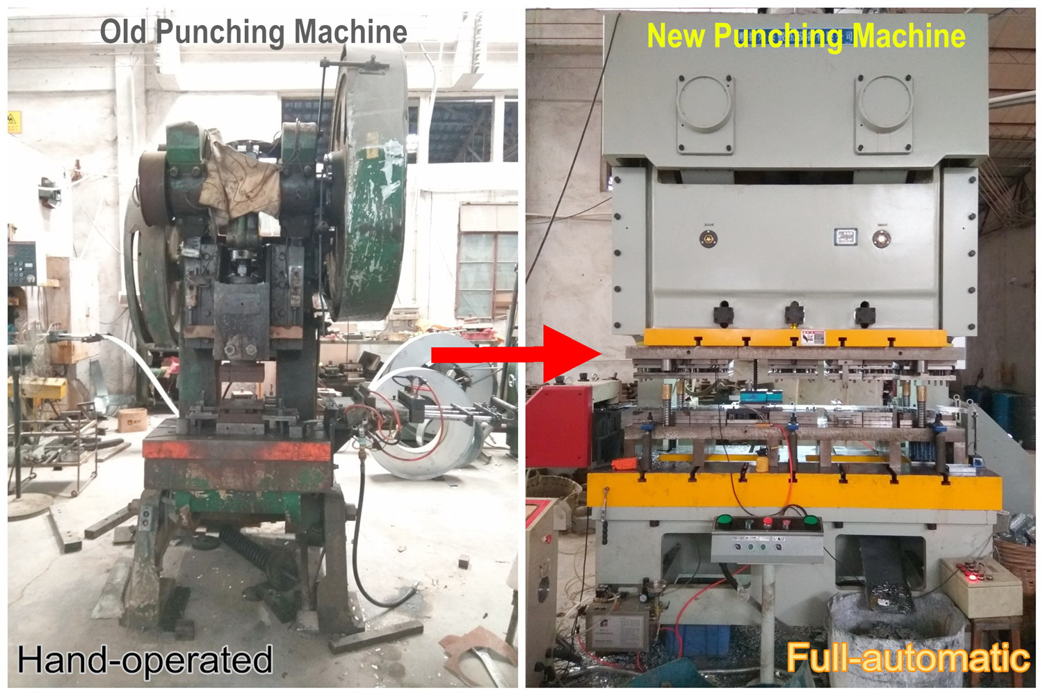But in 2017, we invested about USD150,000.00 to develop new moulds in automatic running. The production time have improved, only takes about 15~20 days by our new punching machine! The new machines are full-automatic, save human labour and much time.