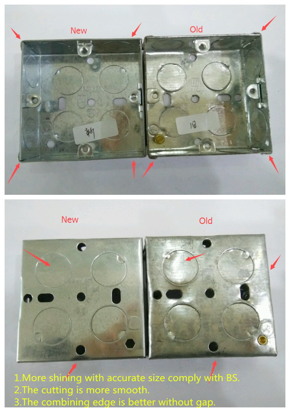 The new metal box is more shining with accurate size, more fitness for BS standard, the cutting is more smooth and the combining edge is better without gap!